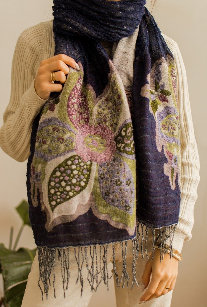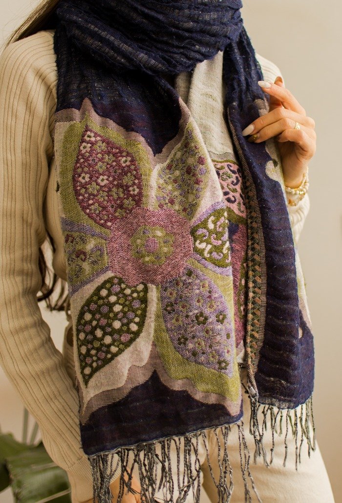 Tagi: #szal boho, #szal z kwiatami, #szal z wełną