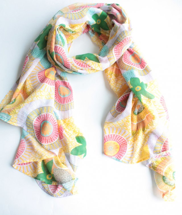 Duży, miękki szal w wiosenne wzory wykonany w mojej ocenie z bawełny lub wiskozy.