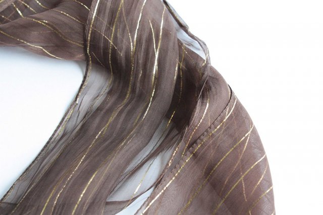 Zwiewny, brązowy szal przetykany zlotem. Wykonany z wiskozy.