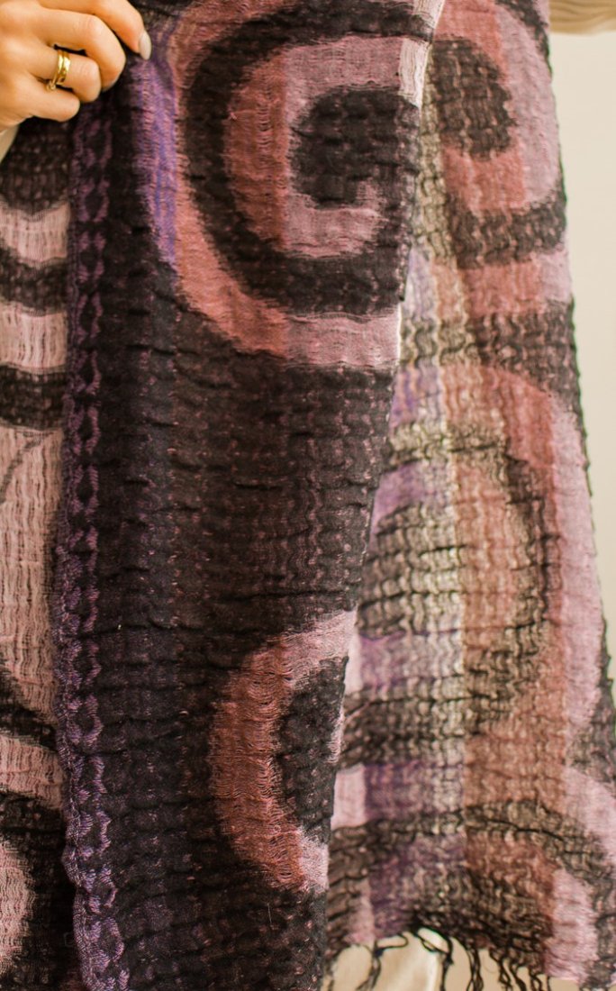 Szal z wełną, we wzór w koła.