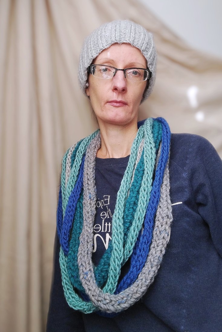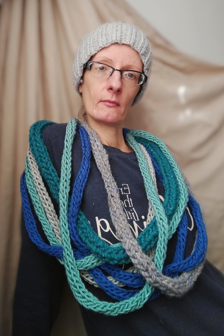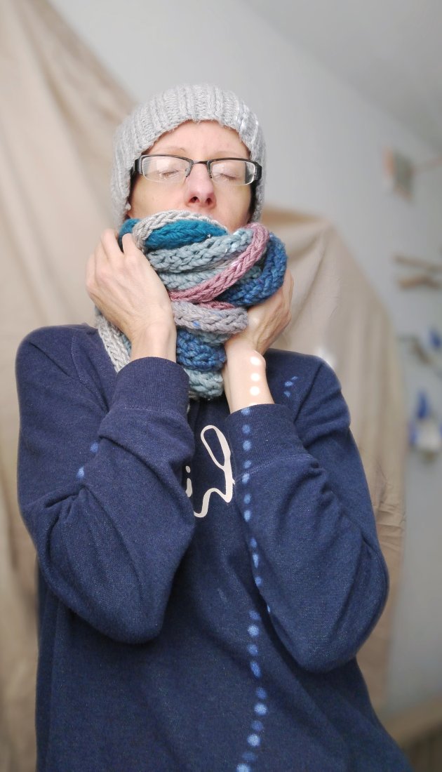 Możesz otulić się, zaplątując go dwa razy, a będzie Ci ciepło i miękko. Możesz też "rozplątać się", wchodząc do pomieszczenia, a zamienisz szalik w szałowy naszyjnik.