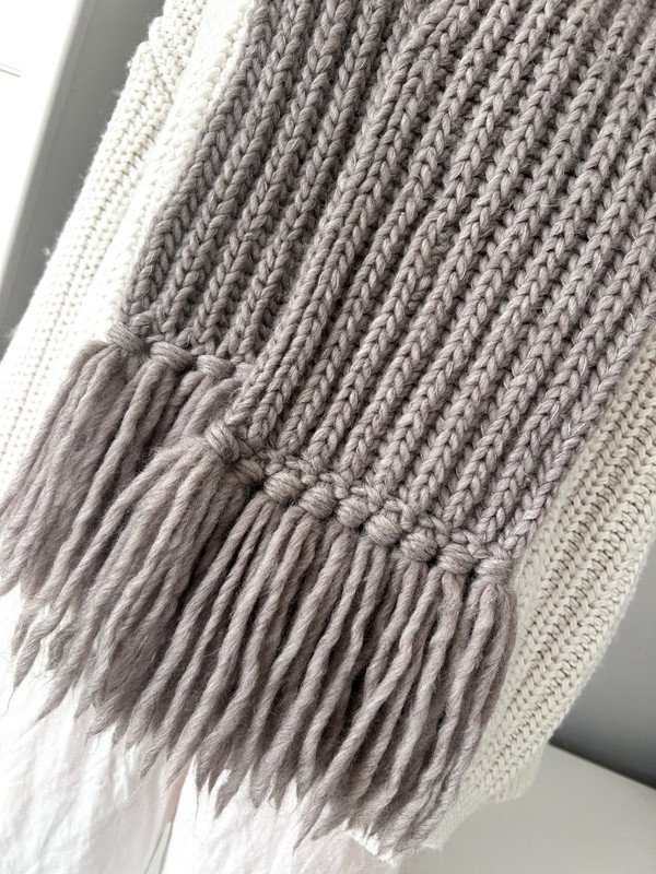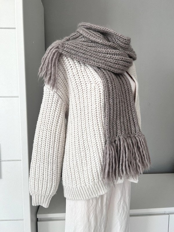 Szalik, szal kolor szaro beżowy. Klasyczny wzór z frędzlami, gruby splot.