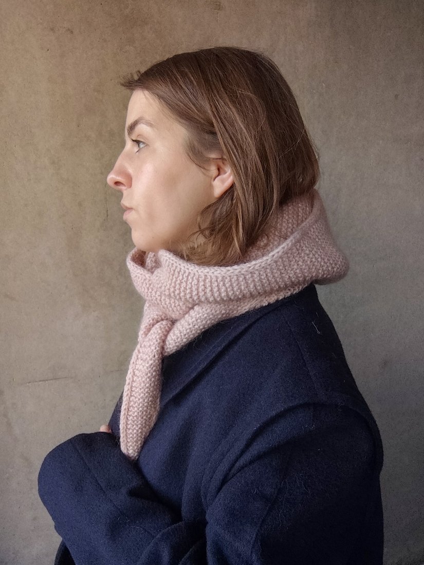 Długi szal z kapturem, zwężany ku obu końcom. Można go zarzucić na głowę i zawiązać wokół szyi. Świetnie wygląda z czapką z daszkiem.
