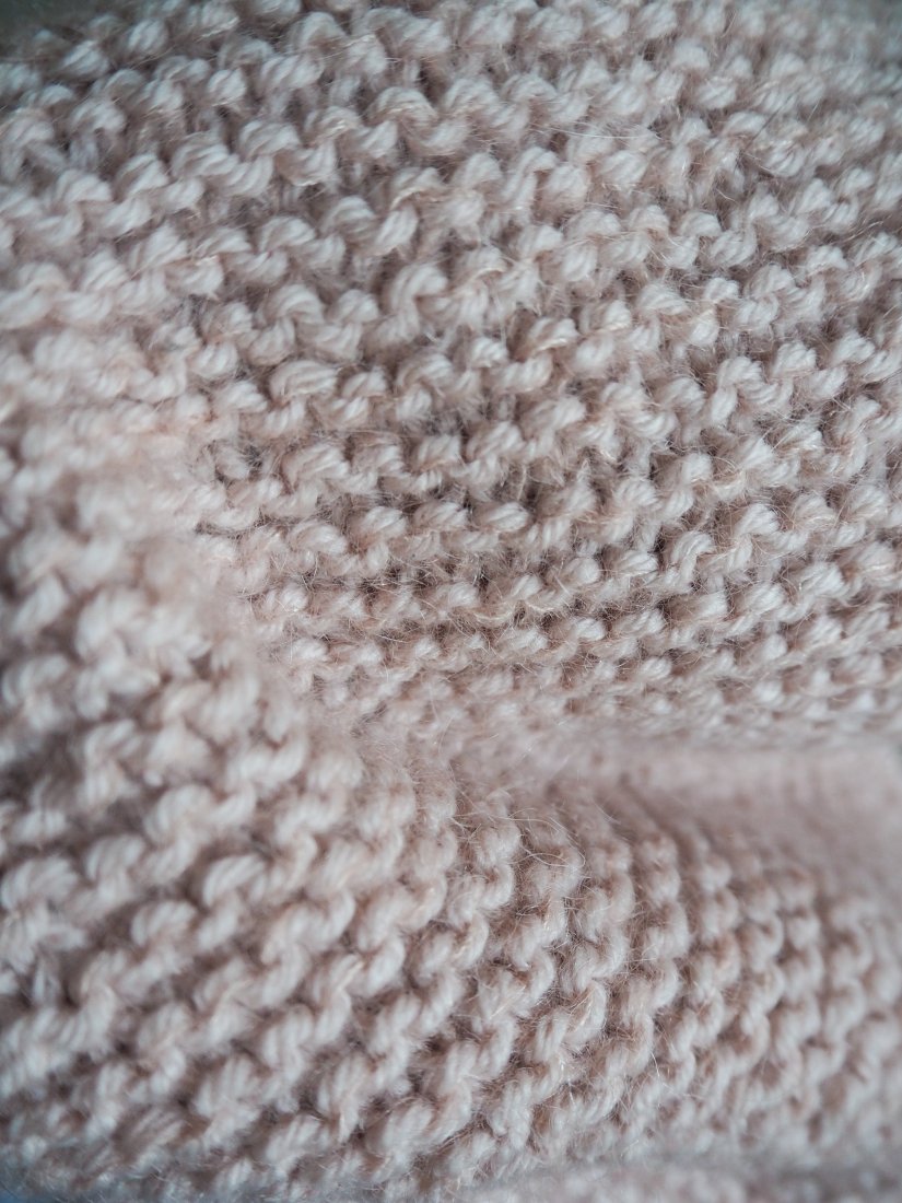 Gruby ciepły szal, w którym można skryć się przed chłodem. Mięsista dzianina z delikatnym puszkiem w kolorze pudrowych cukierków. Szal wykonany ręcznie na drutach z luksusowej mieszanki wełny, moheru i jedwabiu - niezwykle przyjemny w dotyku. Nie drapie.