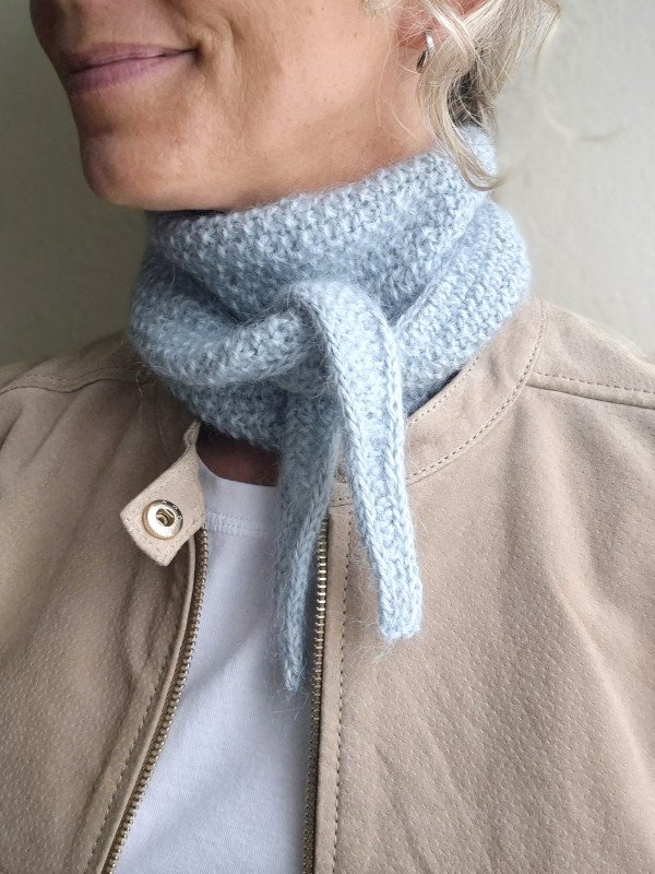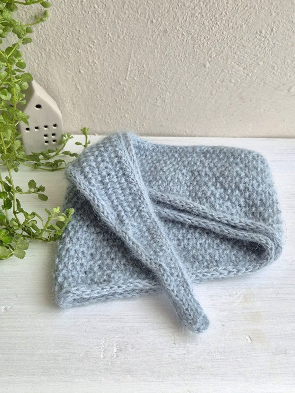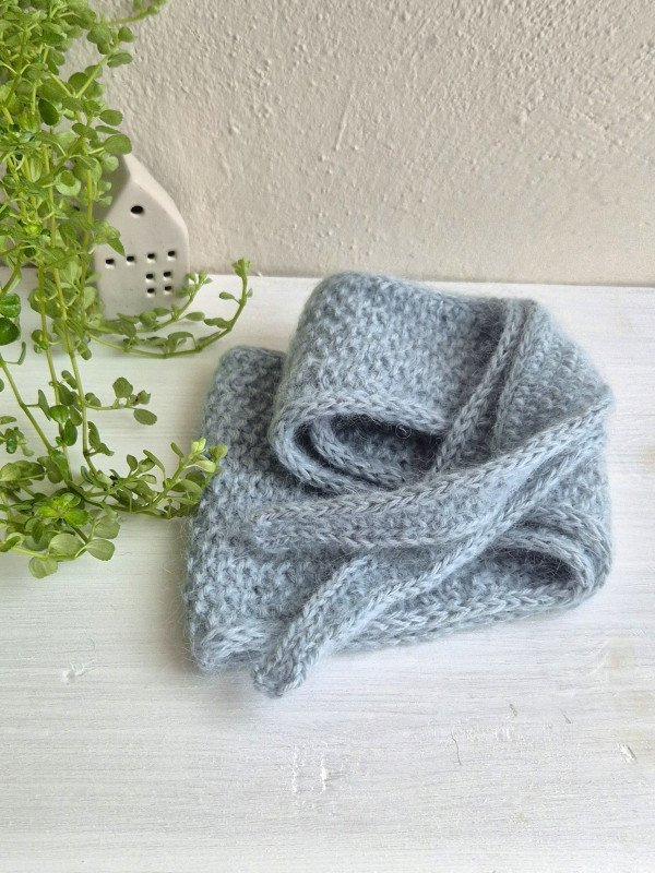 Wyjątkowy mini szalik wykonany ręcznie na drutach z połączenia dwóch szlachetnych nitek: