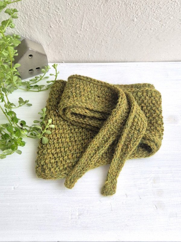 Wyjątkowy mini szalik wykonany ręcznie na drutach z luksusowej włóczki 100% superfine alpaka. Jego wymiary to 110 cm x 15 cm (w najszerszym miejscu) – lekki i wygodny, a jednocześnie niezwykle ciepły.