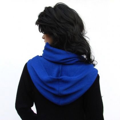 Szal z kapturem, w pięknym chabrowym kolorze.