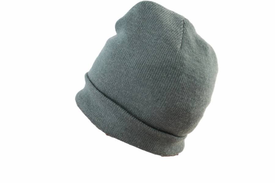 Czapka vintage w stonowanym szałwiowym odcieniu zieleni. Dół można podwinąć, uzyskując mankiet.