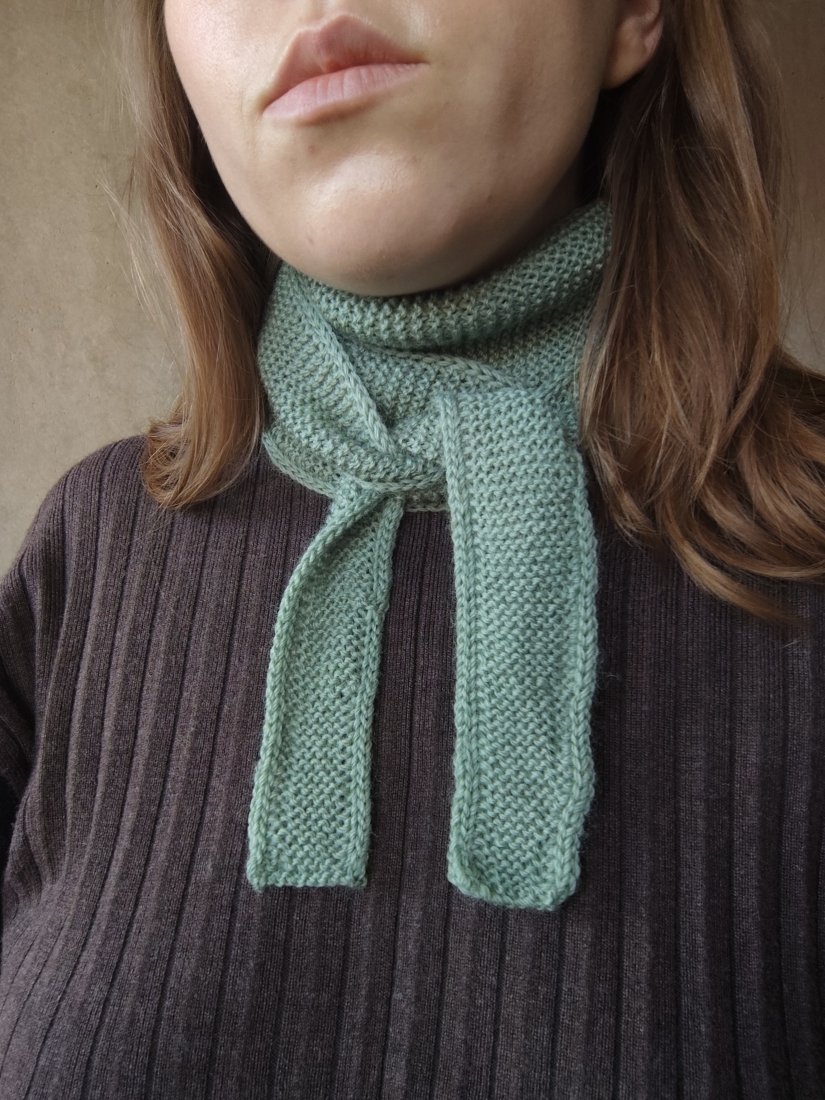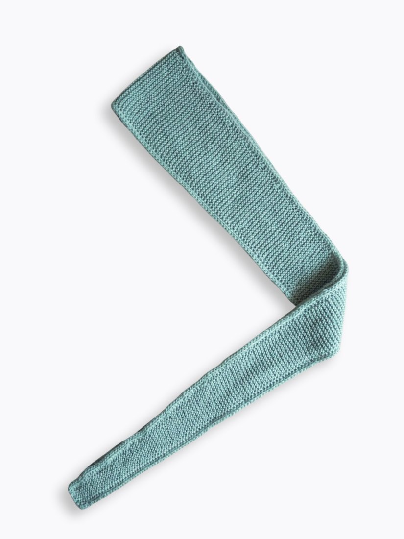 Wełniany szalik w pięknym szałwiowym kolorze. Szalik wykonany ręcznie na drutach z miękkiej wełnianej przędzy. Nie drapie w dotyku.