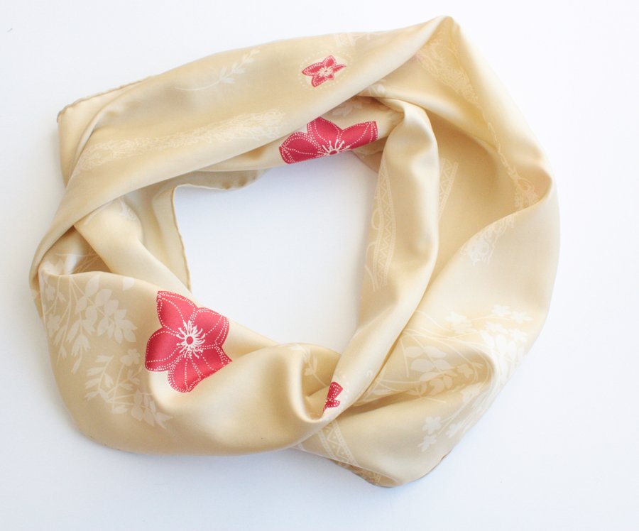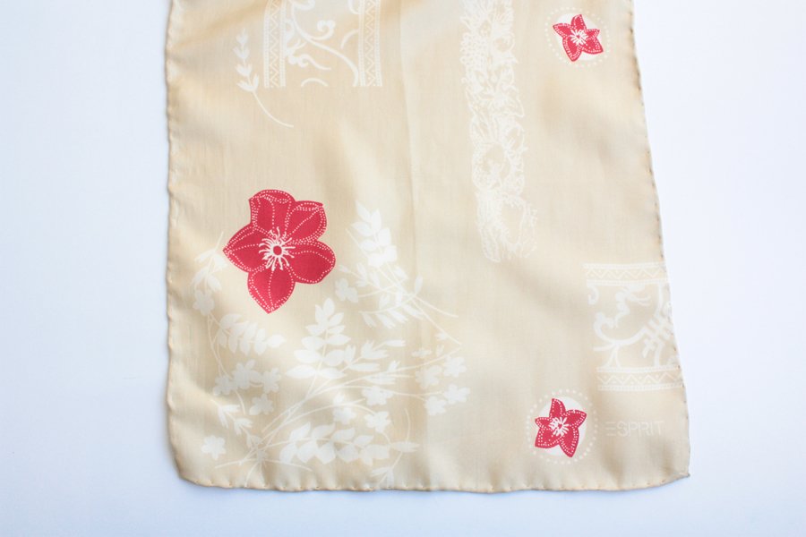 Jasnobeżowy szal w kwiatowe wzory marki Esprit. Materiał to prawdopodobnie jedwab.