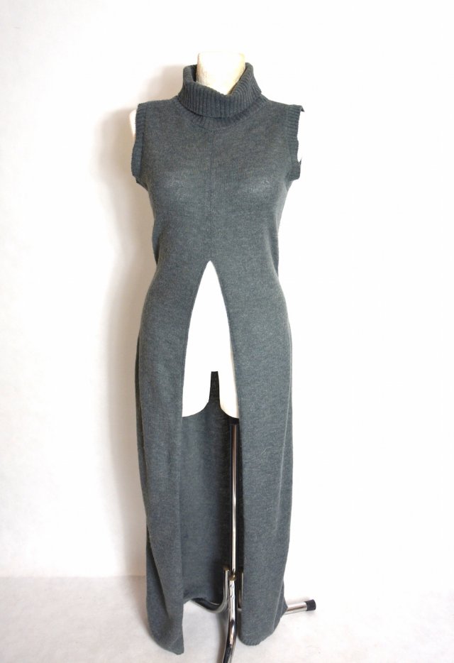 Unikatowa długa szara sukienka z golfem z długim rozcięciem z przodu (od pasa ), wykonana ze sweterkowej bardzo przyjemnej dzianiny.