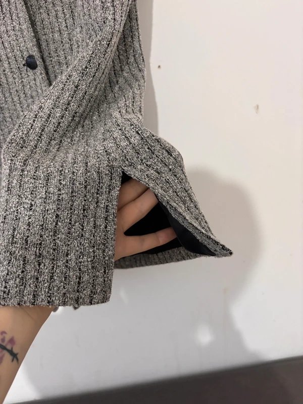 • kolor: szary melanż z delikatnymi czarnymi prążkami