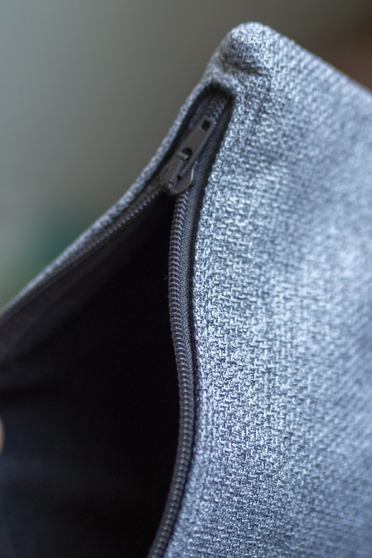 Kosmetyczka jest zapinana na suwak, w środku bawełniana podszewka.