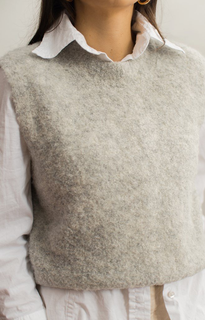 Szara kamizelka z milutkiej dzianiny.