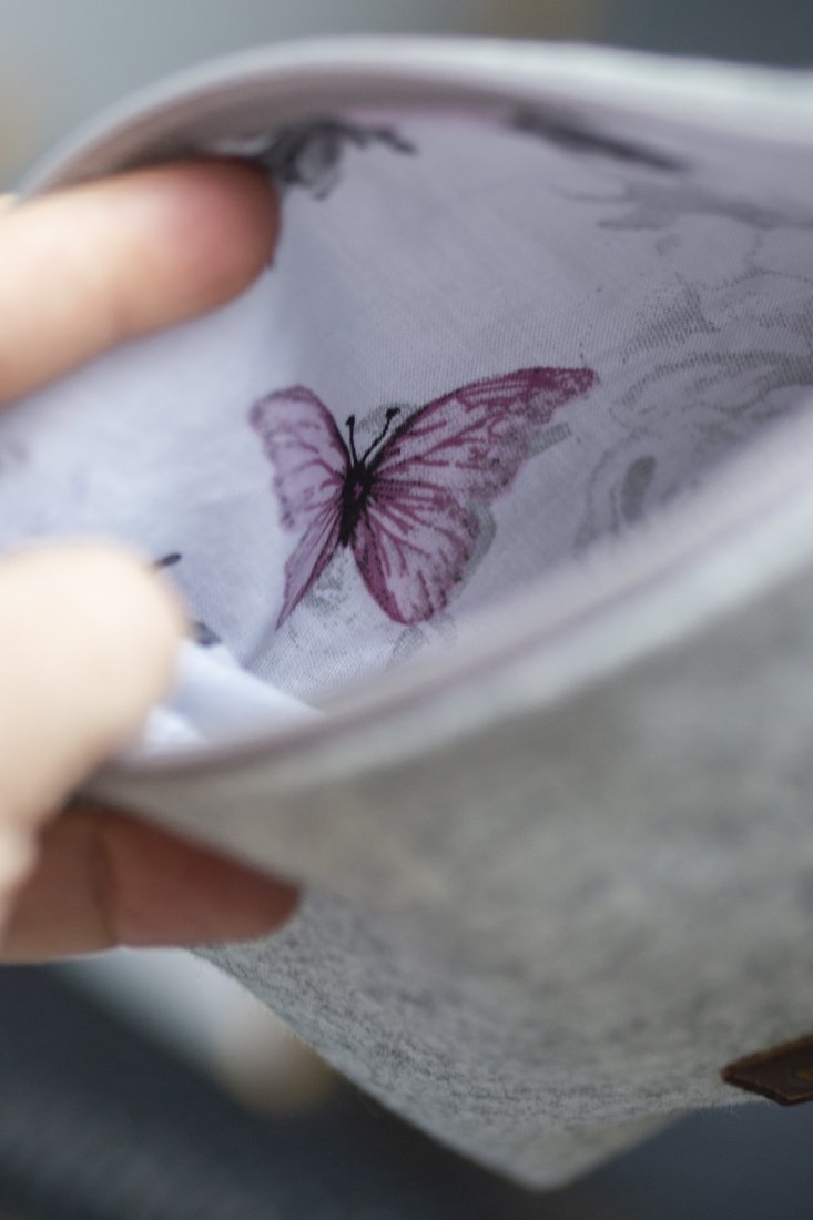 Kosmetyczka jest zapinana na suwak, w środku bawełniana podszewka.