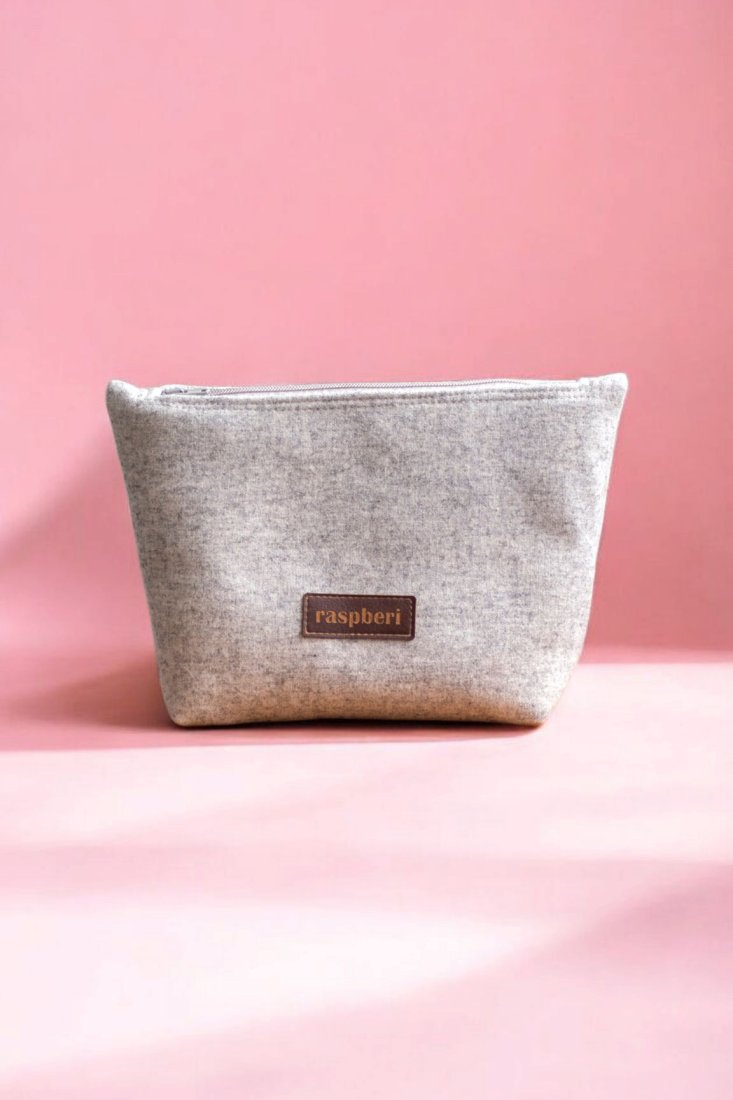 Duża kosmetyczka w kolorze jasnoszarym.
