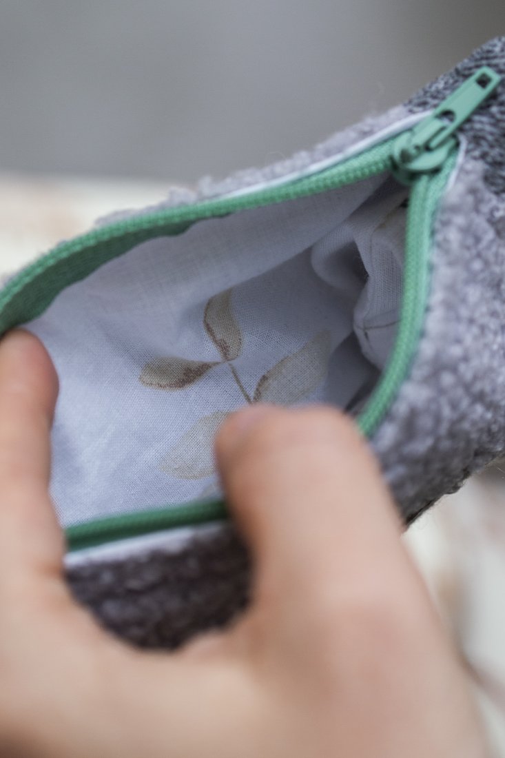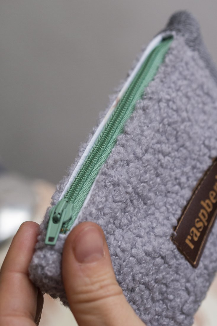 Kosmetyczka w rozmiarze MINI wykonana z szarego "baranka".