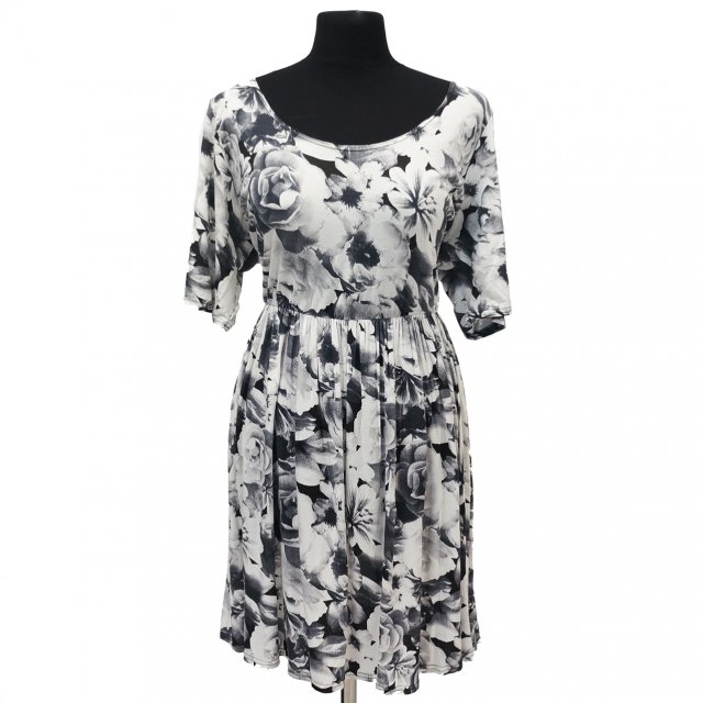 Sukienka w szare i czarne kwiaty - kobieco i uniwersalnie, czyż nie?