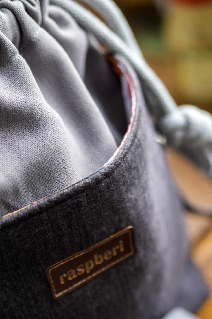 Całość ściągana grubym, bawełnianym sznurkiem w kolorze jasnoszarym.