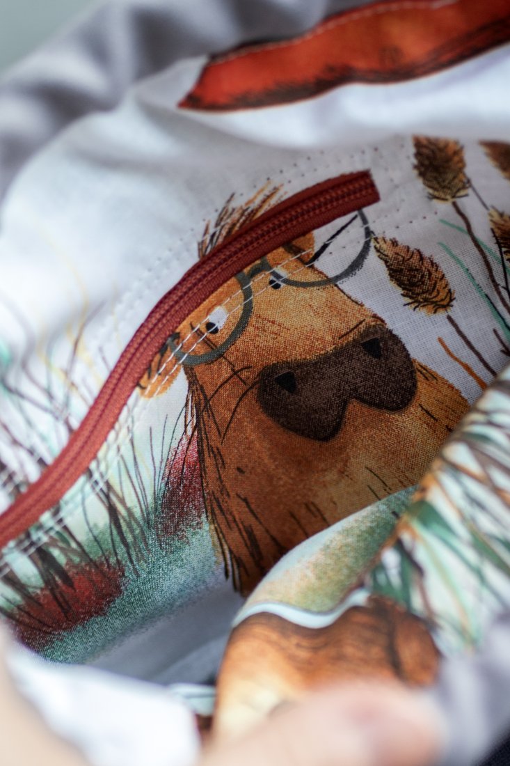 Środek torebki wykończony jest bawełnianą podszewką.