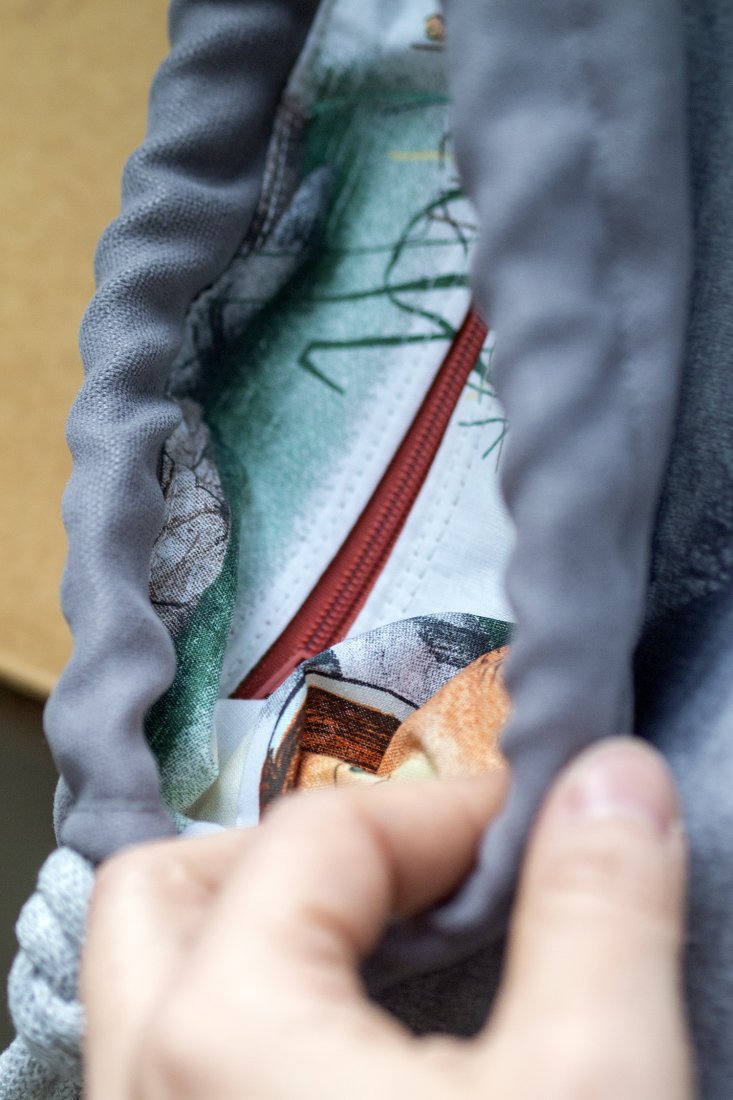 Środek torebki wykończony jest bawełnianą podszewką.