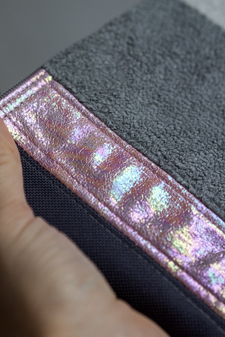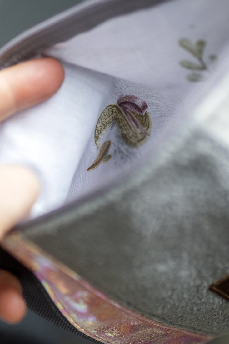 Kosmetyczka jest zapinana na suwak, w środku bawełniana podszewka.
