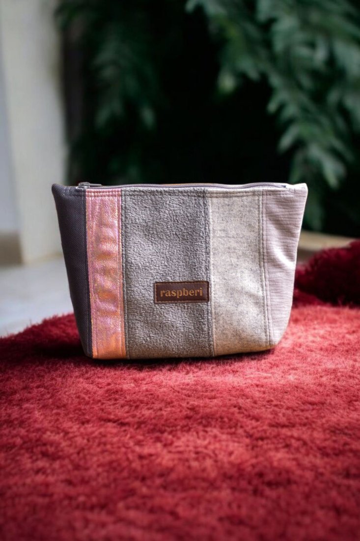 Duża kosmetyczka wykonana w duchu no waste z resztek tkanin.
