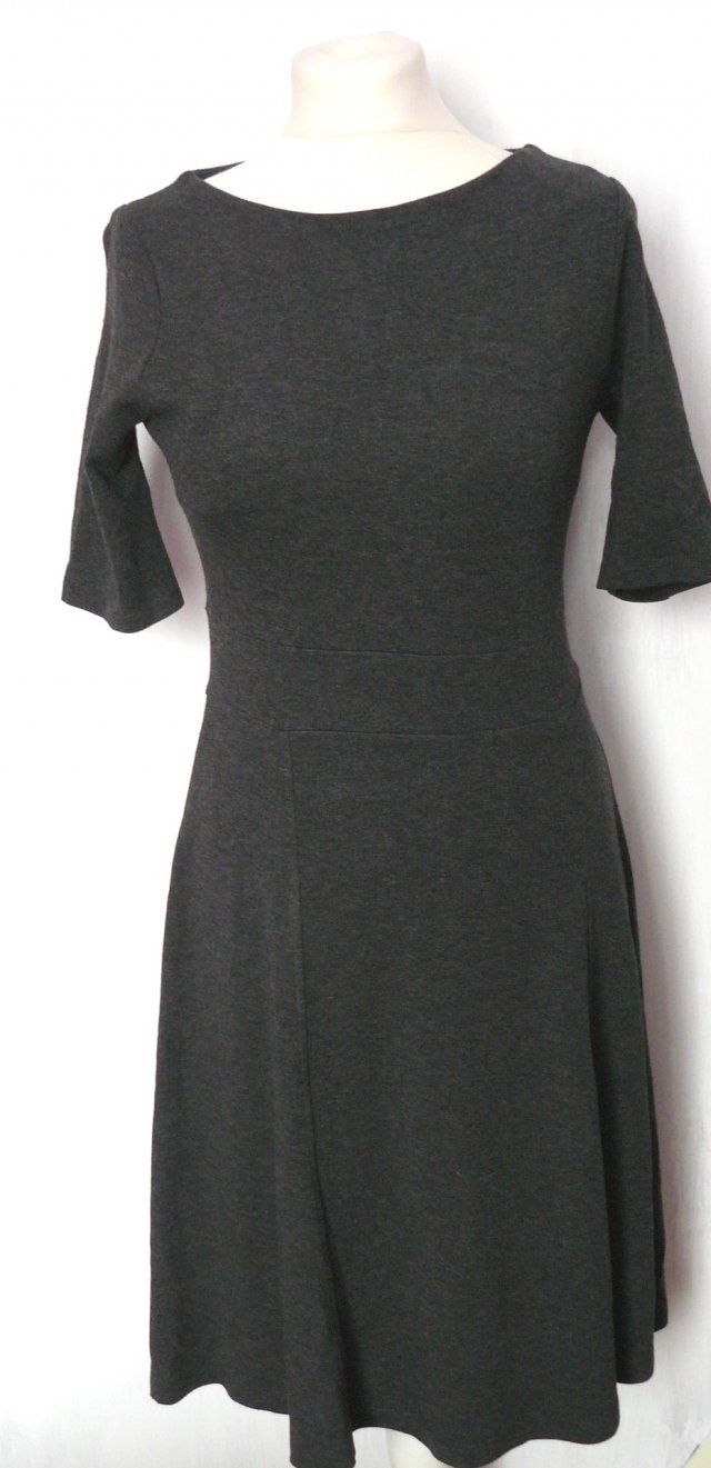 Szara sukienka, basicowy klasyk z rękawem przed łokieć