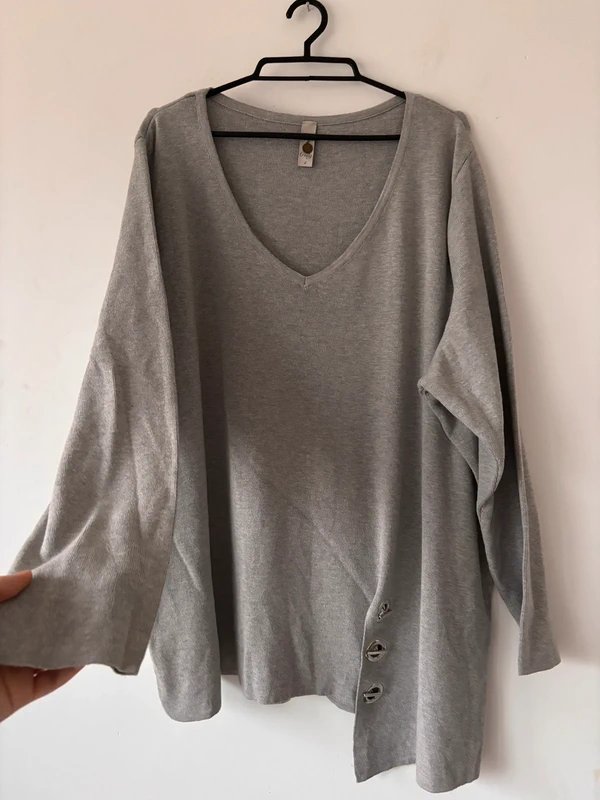 tagi: #tunika #sweter #dzianina #szaratunika #oversize #asymetryczna #vneck #codzienna #minimalizm #basic #casual #modadamska #secondhand #vintage #softknit #cottonblend #loosefit #wygodna #najesien #nazime #plusize #komfortowa #stylcodzienny #polskawysylka #wysylka24h #womenwear #fashion #greyknit #asymmetric #knittop