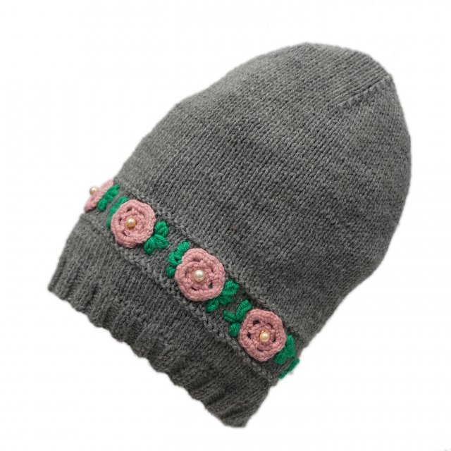 Świetna długa czapka z różowym wianuszkiem