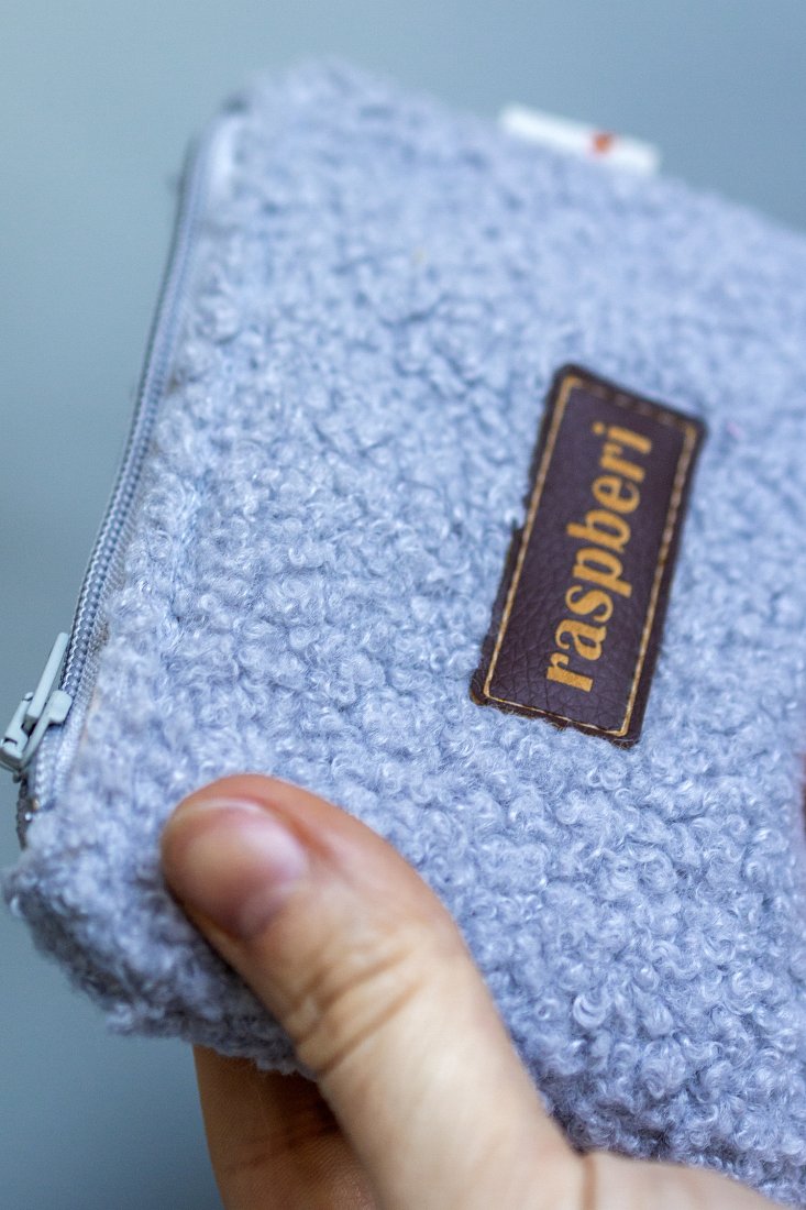 Prosty wodoodporny portfel wykonany z szarej tkaniny typu "baranek".