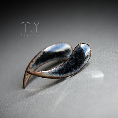 Ceramiczne podłużne kolczyki, ręcznie wykonane z delikatnej gliny kamionkowej, jednostronnie szkliwione mieszanką szarych szkliw z efektem plamek, tył matowy czekoladowobrązowy na antyalergicznych sztyftach.długość ok 2,8cm. Polecam