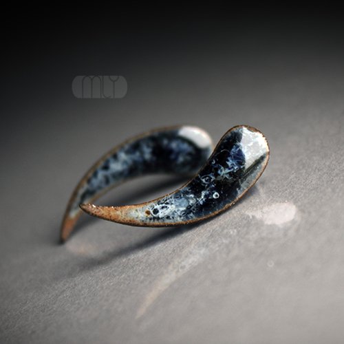 Ceramiczne podłużne kolczyki, ręcznie wykonane z delikatnej gliny kamionkowej, jednostronnie szkliwione mieszanką szarych szkliw z efektem plamek, tył matowy czekoladowobrązowy na antyalergicznych sztyftach.długość ok 2,8cm. Polecam