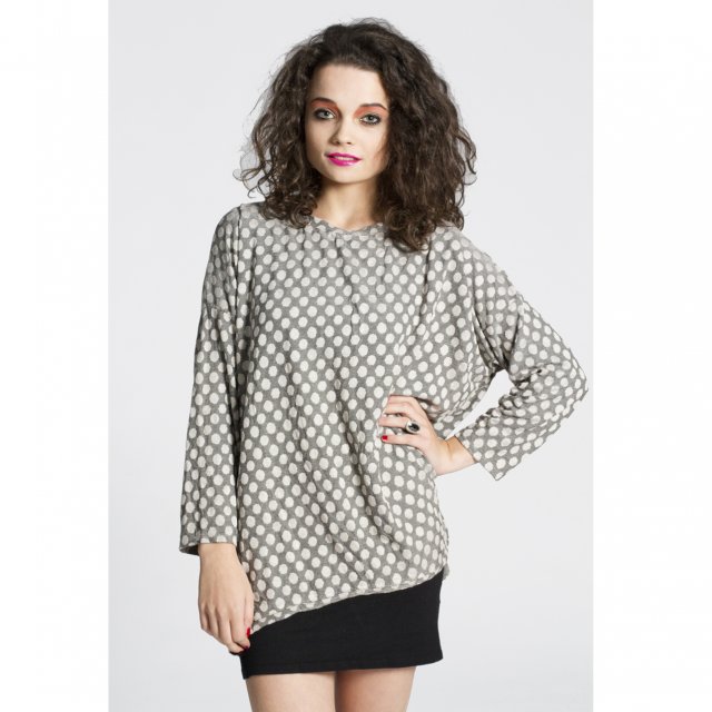 Luźna oversizeowa elastyczna lejąca się bluza w groszki na prążkowanym tle