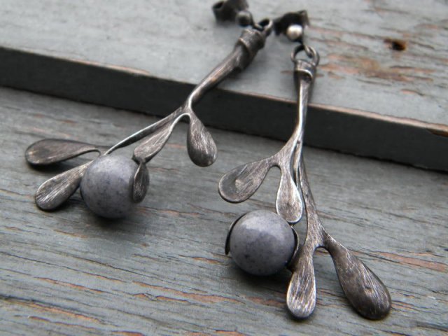 kolczyki z jadeitów w ocynowanej miedzi .