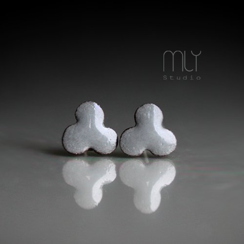 Ceramiczne kolczyki w formie sztyftów, ręcznie wykonane z delikatnej gliny kamionkowej, jednostronnie szkliwione mieszanką szarych szkliw z efektem plamek i o pięknym połysku, na antyalergicznych sztyftach w kolorze srebrnym. Długość ok. 10mm. Polecam