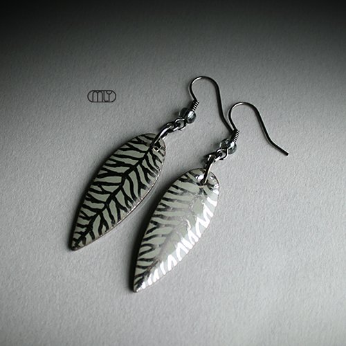 Oryginalne i efektowne ceramiczne kolczyki ręcznie wykonane z gliny kamionkowej, jednostronnie szkliwione mieszanką szarych szkliw w ciepłym odcieniu taupe z efektem drobnych plamek, na biglach w kolorze ciemnego srebra. Długość około 5cm. Polecam