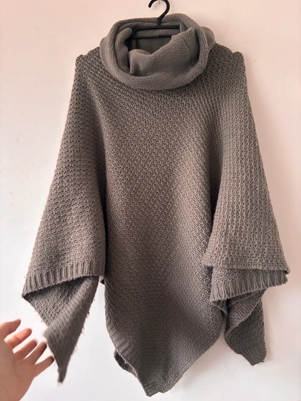 ponczo sweter, szare ponczo, sweter z golfem, oversize, ciepłe ponczo, sweter na jesień, sweter na zimę, asymetryczny krój, dzwonowe rękawy, taupe, unikat, luźny sweter, sweter oversize, boho, styl skandynawski, sweter na co dzień, Vinted Polska, ponczo z dzianiny, golf opadający, sweter bez zapięcia, plus size, moda zimowa, rękawy oversize, sweter ponczo, szary sweter, przytulny sweter, sweter z teksturą, sweter uniwersalny, ponczo handmade vibe