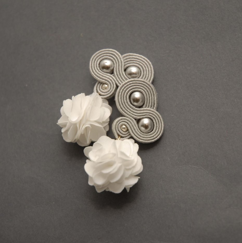 4.  > szaro-białe klipsy sutasz z kwiatkiem (nr 7121769)