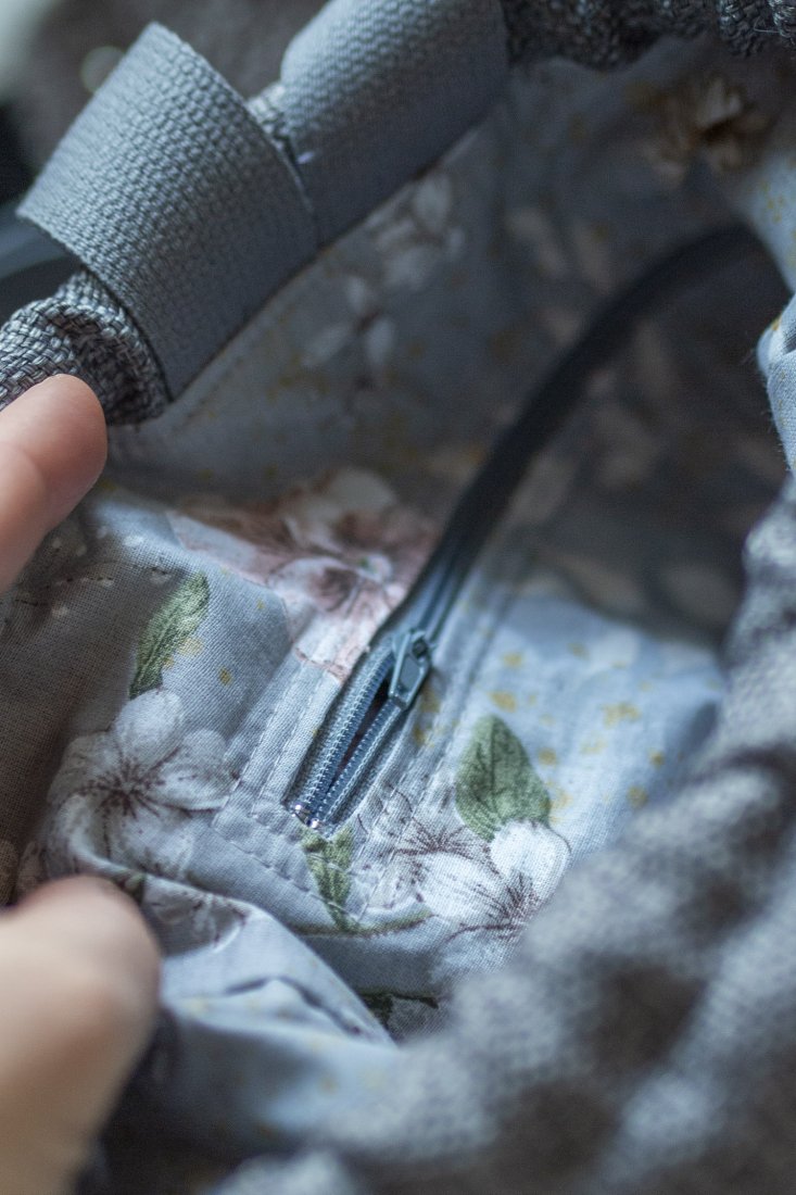Środek plecaka wykończony jest bawełnianą podszewką.
