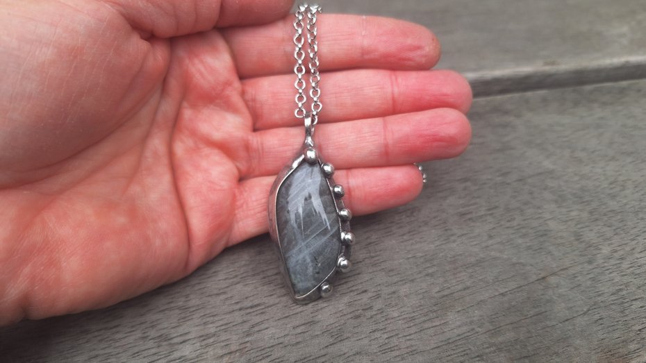 Tagi: #labradoryt, #szary wisiorek, #wisiorek z kamieniem, #wisiorek z labradorytem
