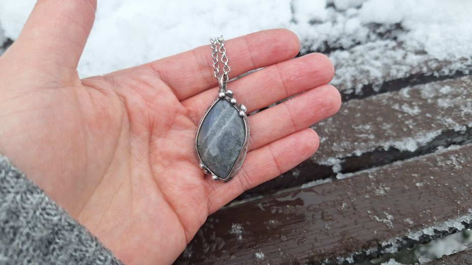 Tagi: #labradoryt, #szary wisiorek, #wisiorek z kamieniem, #wisiorek z labradorytem