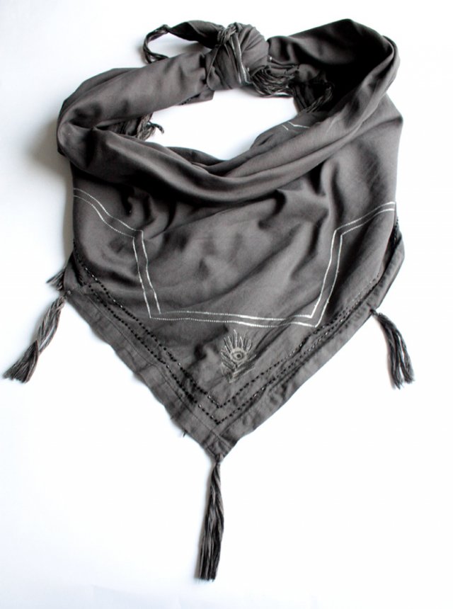 Duża, praktyczna chusta z subtelnymi ozdobnymi detalami. Uniwersalna szarość sprawi, że będziesz mogła połączyć ją z ubraniami we wszystkich kolorach. Świetnie sprawdzi się w roli ochrony przed chłodem, jak również jako element stylizacji bez względu na porę roku. Ta chusta w sposób uniwersalny wzbogaci Twoją garderobę. Materiał jest miękki, przyjemny w dotyku, jest to prawdopodobnie bawełna lub wiskoza.