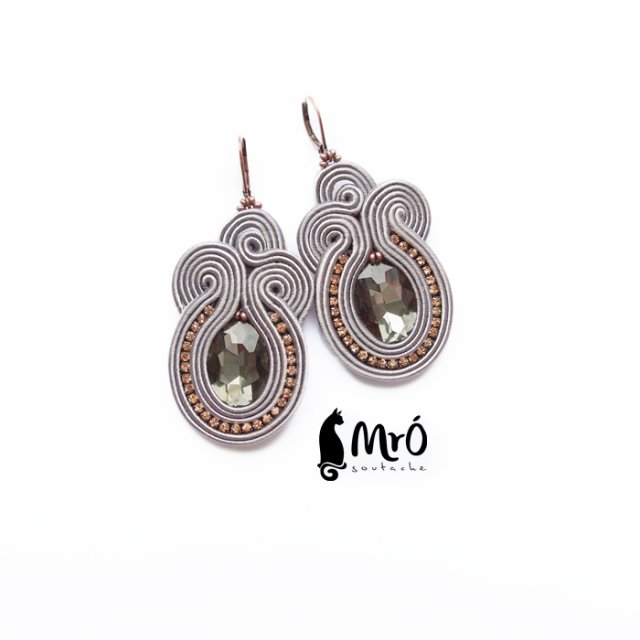 Kolczyki wykonane w technice haftu Soutache w eleganckich i stonowanych kolorach.