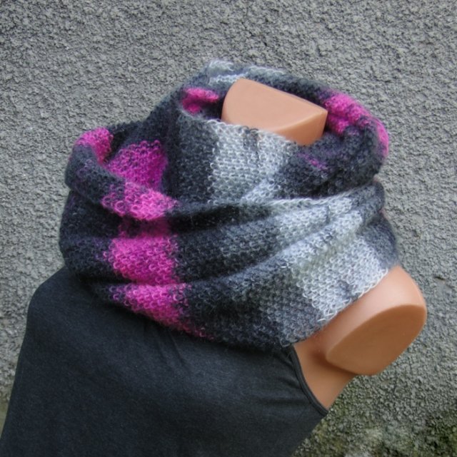 Przepiękny komin, zamotka... wykonany ręcznie na drutach z włóczki w pozytywnych odcieniach. Miękki i miły w dotyku, delikatnie puszysty ( moher może przeszkadzać osobom o bardzo wrażliwej skórze). Otulak można zawinąć na dwa razy. Może zastąpić czapkę. Wymiary otulaka: obwód ok. 135 cm x szer. 40 cm. Skład: 80% AKRYL - 10% MOHER - 10% WEŁNA