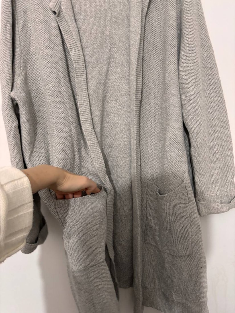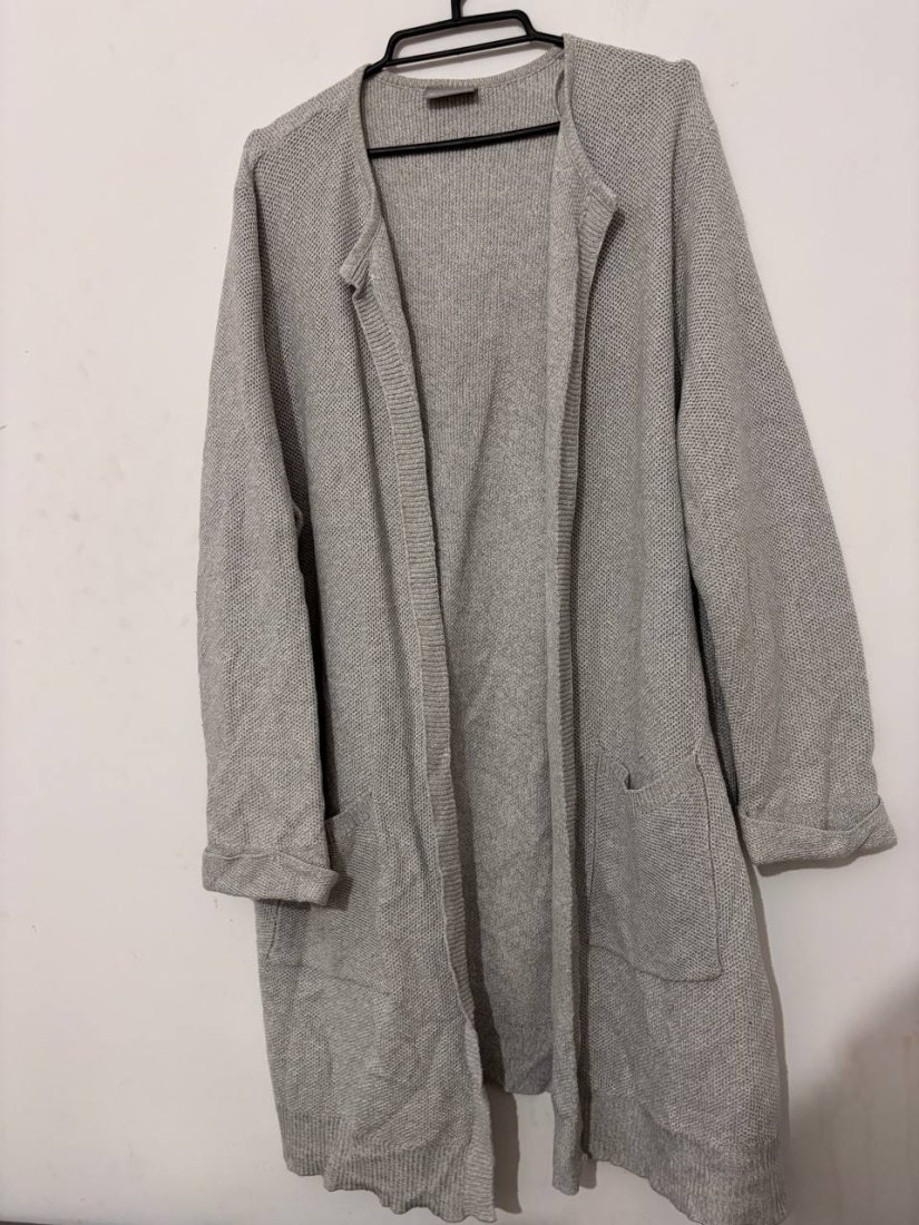 cardigan long grey XXL C&A cotton acrylic sweater women oversize warm soft comfy pockets fall winter basic simple casual everyday minimal chic knitwear