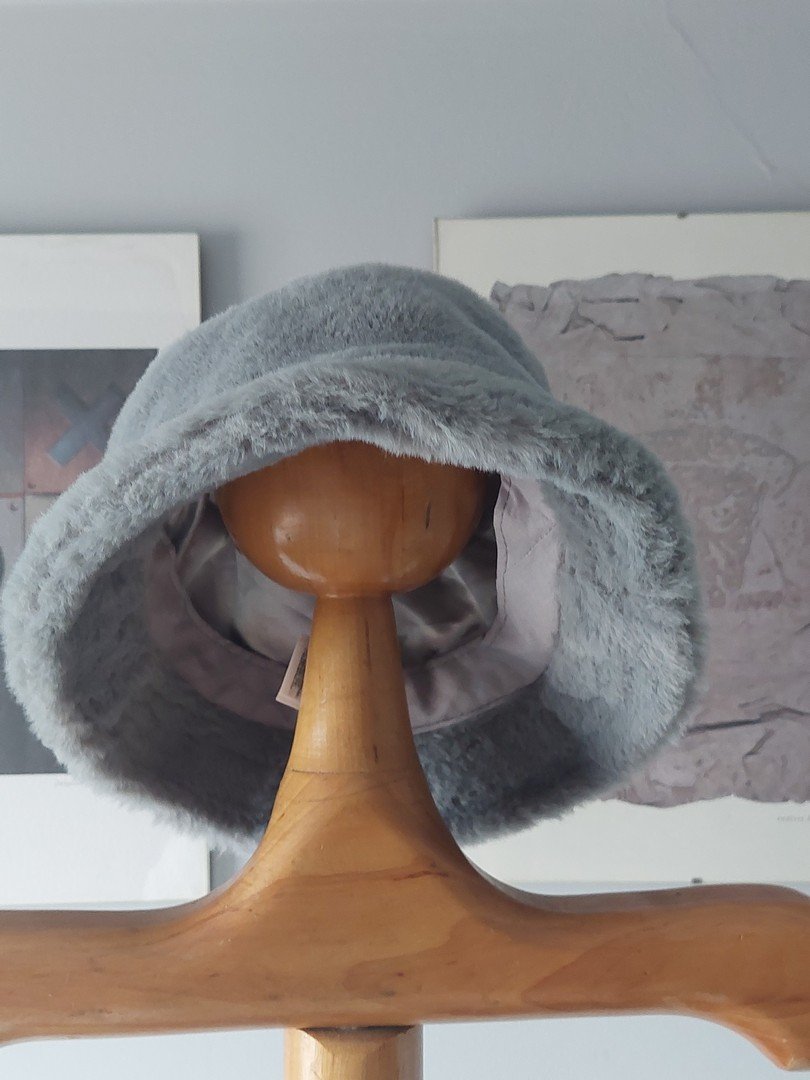 zimowy kapelusz z małym rondem, w jasnym szarym kolorze, marki f&f. materiał 100% poliester. rozmiar onesize, obwód ok 57cm. stan idealny.