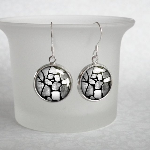 Delikatne, śliczne kolczyki wiszące z oryginalną grafiką,zatopioną pod wypukłym szkiełkiem i oprawioną w hipoalergiczną bazę w kolorze srebra. Grafika jest najwyższej jakości, wyraźna i nasycona. Bigle otwarte ze srebra próby 0,925. Oryginalne kaboszony wykonane ręcznie według mojego projektu i przeze mnie, z dbałością o każdy detal.