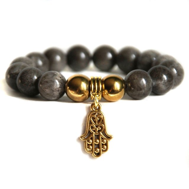 POMYSŁ NA PREZENT! śliczna i niezwykle efektowna bransoletka na solidnej, podwójnej lince elastycznej, wykonana z pięknego marmuru (12mm) oraz złotego hematytu i metalowych elementów. ... HAMSA (RĘKA FATIMY) -dłoń dobrych, sprawiedliwych uczynków, chroni przed złem i chorobami, niesie szczęście i radość.... PASUJE NA NADGARSTEK 15,5-16,5cm.... ZoBACZ CAŁĄ MULTIKOLOROWĄ KOLEKCJĘ!!! ... BIŻUTERIA ZAWSZE PODRÓŻUJE W OZDOBNYM OPAKOWANIU :-)