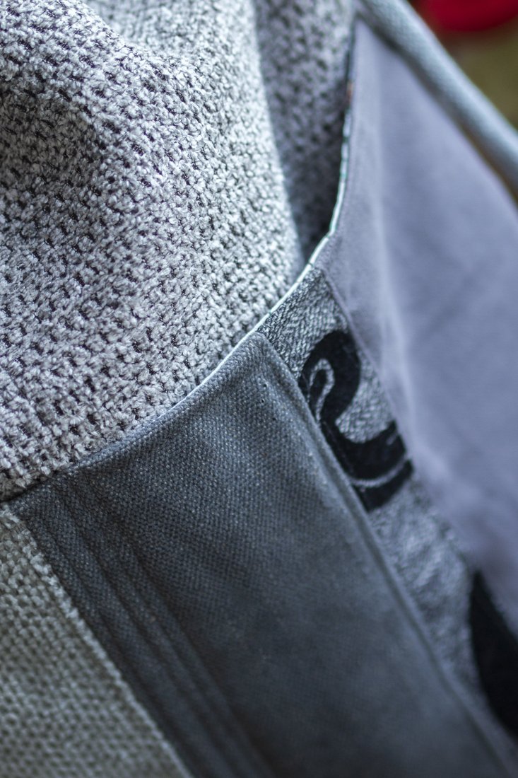 Dół tworzy dodatkowe miejsce na przechowywanie rzeczy - z przodu dwie kieszenie (np. na butelkę), z tyłu jedną duża kieszeń (idealna na tablet). Wykonane z kilku rodzajów tkanin w stylu patchworkowym.